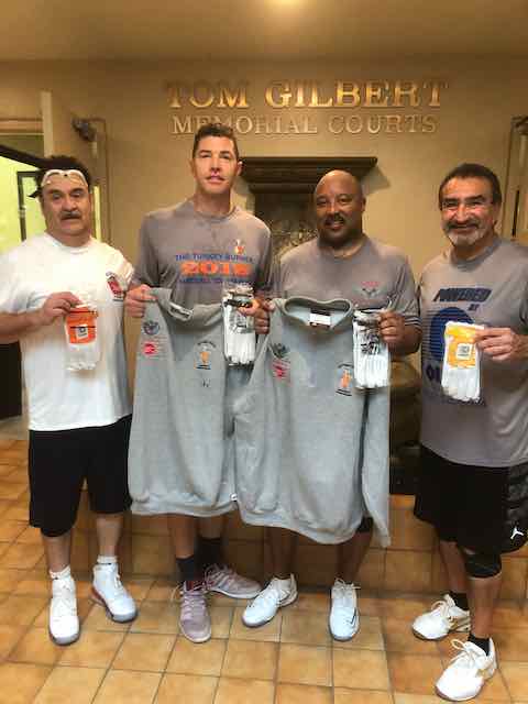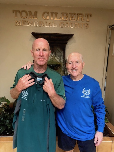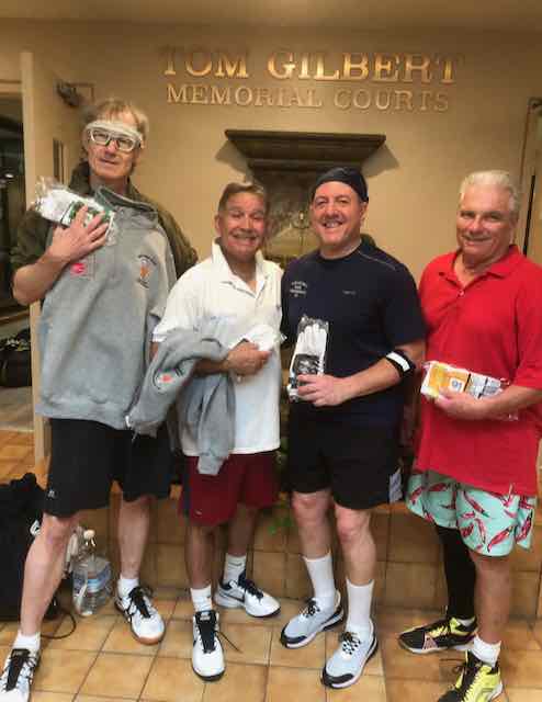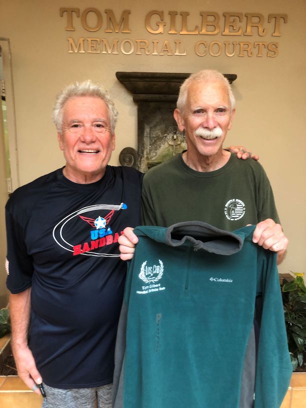 Four years after his death, friends gather to remember Tom Gilbert with a day of handball and a toast on or near his birthday. This year we celebrated on Saturday, September 14. Play was three morning divisions and three afternoon divisions of a four game round robin with each player changing partners for each game with winner determined by most games won or points scored. In the morning group the three division winners were: Jerry Jarrett, Marco Coromac/Javier Arellano (tie) and Roy Harvey. In the afternoon group the three division winners were: Dennis Haber, Fausto Castro and Marcus Hough. All division winners were determined by total points with less than five points separating first, second and third place. Thanks to sponsors Los Caballeros, Mark Shelgren and players and friends donations we are able to make a sizable donation to the USHA Wafe Risner Fund.