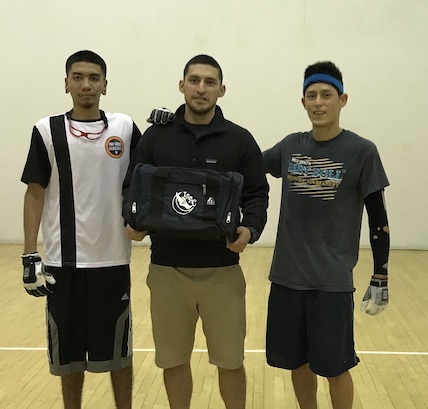 was a huge success this past weekend. We had 35 kids this year, which was really perfect. Sometimes we have so many that its hard to give them substantial playing time. This year we were able to have them play singles in three divisions, A, B,and C. Again all kids recieved tournament shirts , USHA official headbands, free food, and a pair of Owen handball gloves.