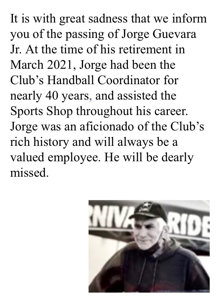 Bill was a handball player and member of San Diego Tennis and Racquet Clu.